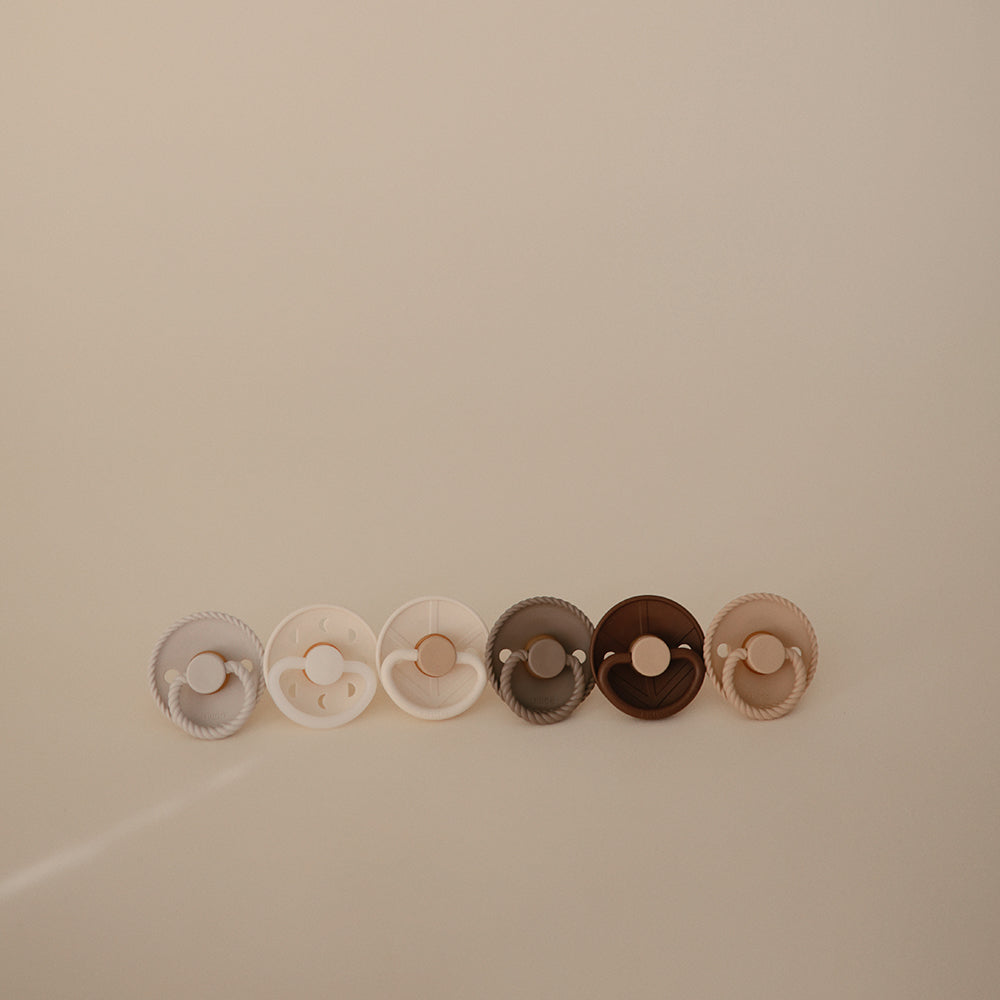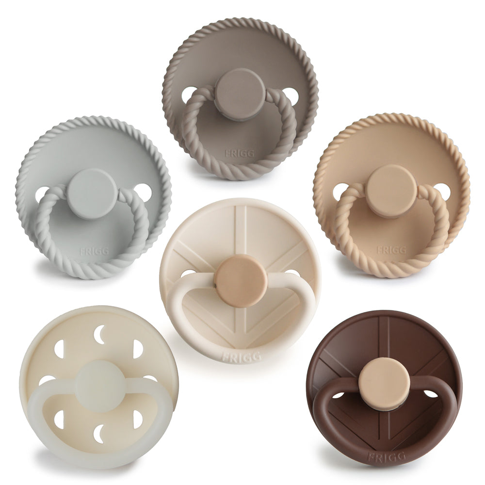 Earthy Wonder: FRIGG 6-Pack ‘Earthy Wonder’, en pakke bestående af 6 runde sutter i nuancer af jordens varme energi. Disse suttefarver er essensen af harmonien i den naturlige verden.