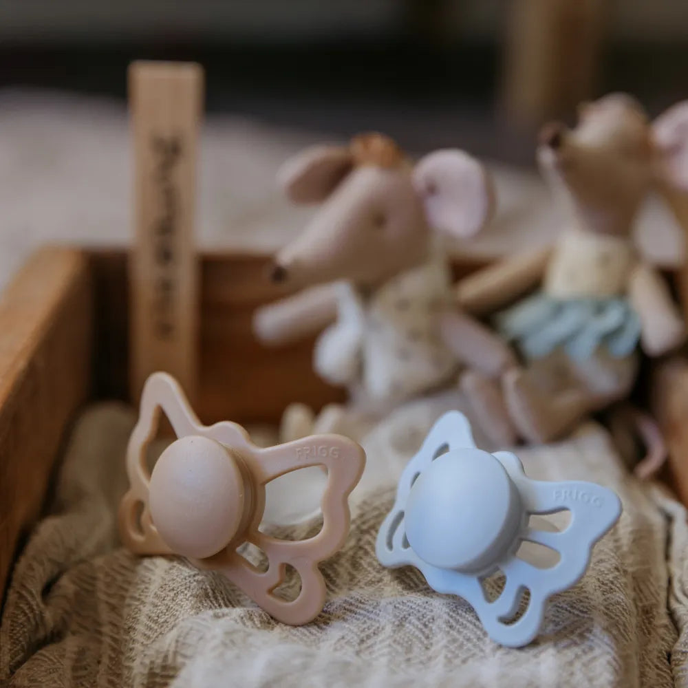 FRIGG sutter er globalt anerkendt for deres kvalitet og sikkerhed. Hver FRIGG sut testes grundigt for at overholde europæiske sikkerhedsstandarder, hvilket giver forældre ro i sindet. Anerkendt af Parents' Picks Awards, Junior Design Awards og som det mest betroede suttebrand er FRIGG et symbol på omsorg, kvalitet og stil.