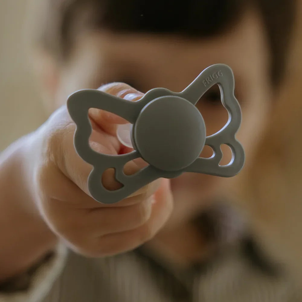 FRIGG Butterfly er en anatomisk sut med en suttedel, der matcher mundens form. Sutten er designet til at lægge mindre pres på ganen, gummerne og kæberne og det er den blideste type sut. Dette mindsker risikoen for skæve tænder og et skævt bid. Det ortodontiske design er perfekt til at understøtte den korrekte udvikling af babys tænder, kæbe og gane.
