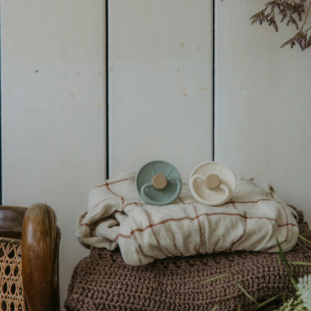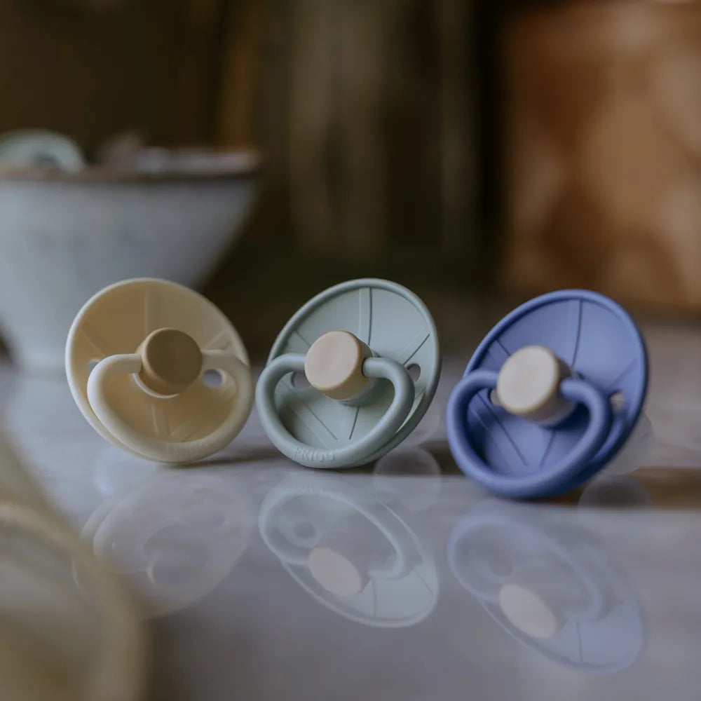 FRIGG sutter er skabt med stor omtanke for både barn og forælder. Skjoldet fremstilles i virgin PP-plast – en ren og stærk plasttype, som aldrig har været genanvendt. Det betyder, at vi undgår uønskede stoffer og sikrer et ensartet, holdbart og hudvenligt materiale. Produktionen sker i Danmark hos erfarne specialister, hvor hele processen foregår in-house for maksimal kontrol og kvalitet.