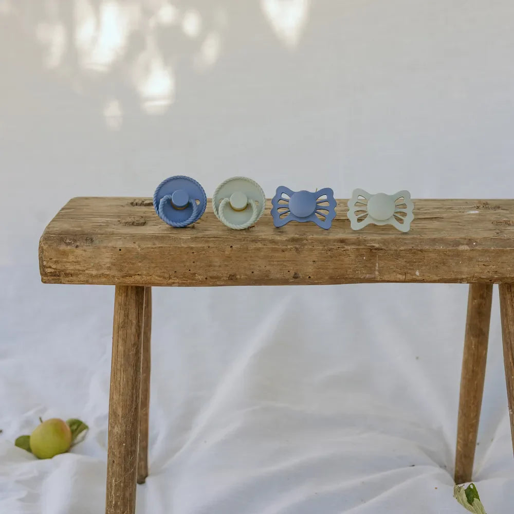 FRIGG Lucky er en sut inspireret af firkløveret. Skjoldet har bølgede kanter, der er formet som firkløverens blade, og disse blade reflekteres også på skjoldet og fungerer som lufthuller. I midten finder du et rundt center, der fremhæver suttens elegance.