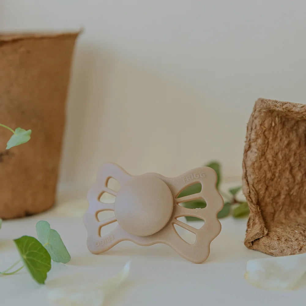 FRIGG Lucky er en sut inspireret af firkløveret. Skjoldet har bølgede kanter, der er formet som firkløverens blade, og disse blade reflekteres også på skjoldet og fungerer som lufthuller. I midten finder du et rundt center, der fremhæver suttens elegance.
