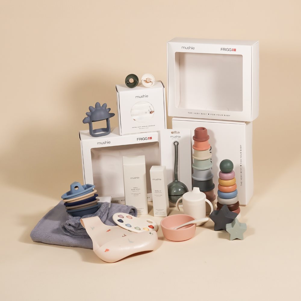 Gør din gave ekstra mindeværdig med FRIGG x Mushie gaveæske med vindue.