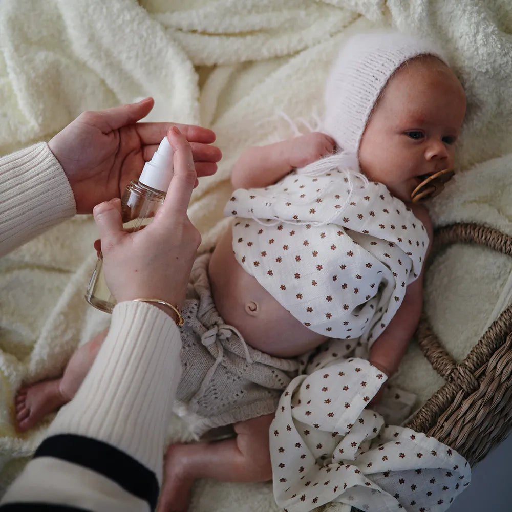 Plejende og fugtgivende baby olie fra Mushie