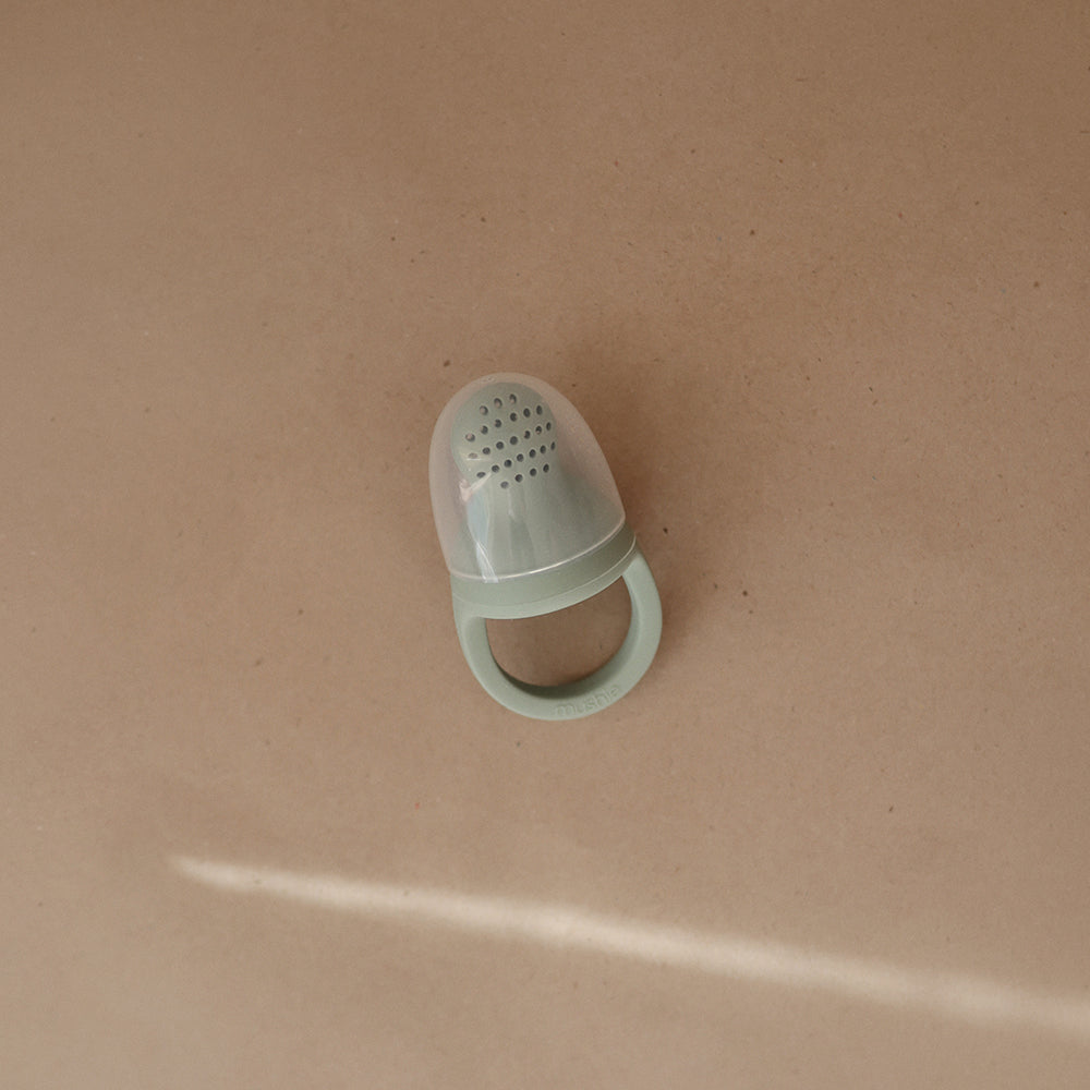 Frugtsutten introducerer nye smage og teksturer på en sikker måde med sit design i fødevaregodkendt silikone, et grebsvenligt håndtag og en todelt konstruktion, der gør rengøringen hurtig og nem. Silikone-frysebakken har ni perfekt portionerede rum og et matteret låg, som gør det let at fryse og opbevare puréer, der passer til frugtsutten. Sættet fuldendes af genanvendelige silikone-puréposer, som er en praktisk og sikker måde at servere smoothies, yoghurt eller puréer – både derhjemme og på farten.