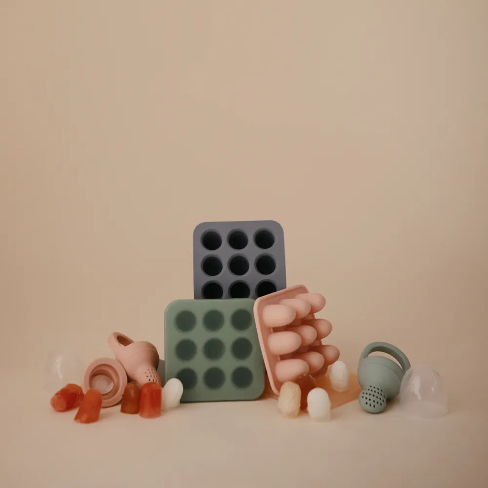 Denne kompakte frysebakke i silikone med plastlåg er fremstillet med omhu og designet helt særligt til at passe sammen med Mushies frugtsutter. Sammen udgør de et sæt, der er perfekt til frysning og servering af puréer til dit barn.