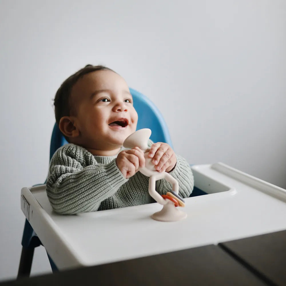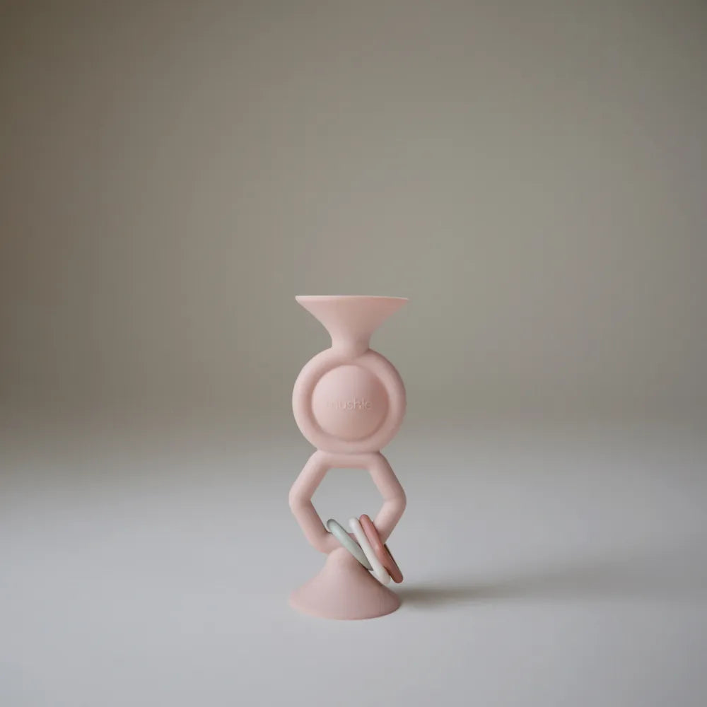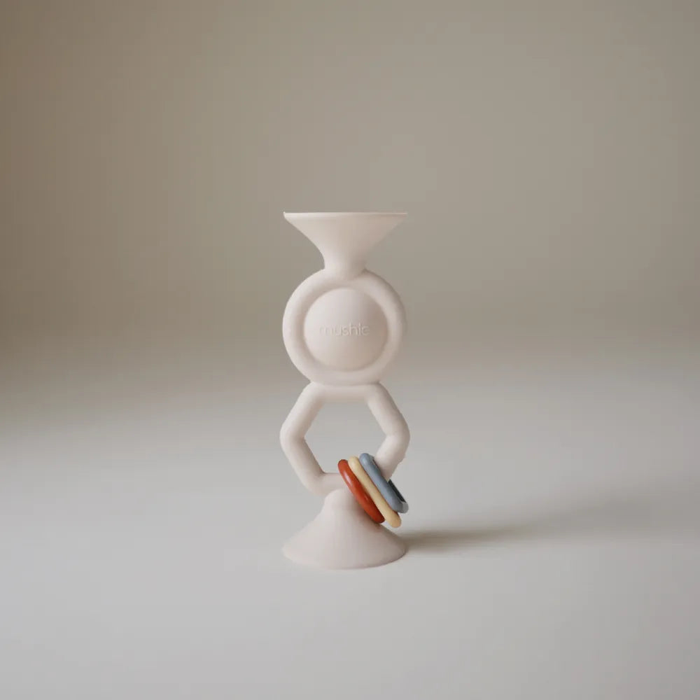 Legetøjet, der er lavet af en kombination af fødevaregodkendt silikone og plastik, er et stimulerende legetøj, der er designet til at fange børns opmærksomhed både derhjemme og på farten.