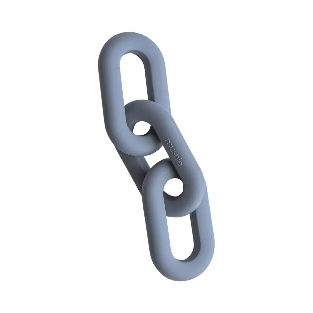 Mushie kæde bidering er designet til at give ultimativ komfort og lindring til de små i den udfordrende tandfrembrudsperiode. Den er lavet af 100% fødevaregodkendt silikone og er meget holdbar og nem at rengøre. Den unikke bidering har tre bindeled der giver børnene sanseoplevelser, samtidig med at den effektivt lindrer deres ømme gummer.