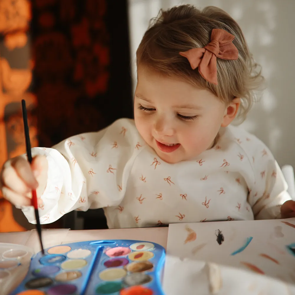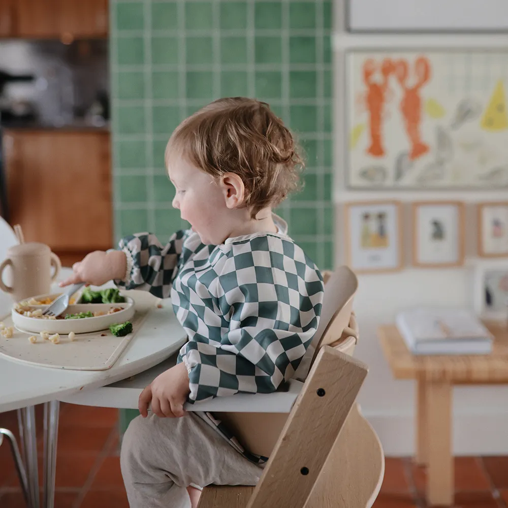 Undgå spild på tøjet med en langærmet hagesmæk!