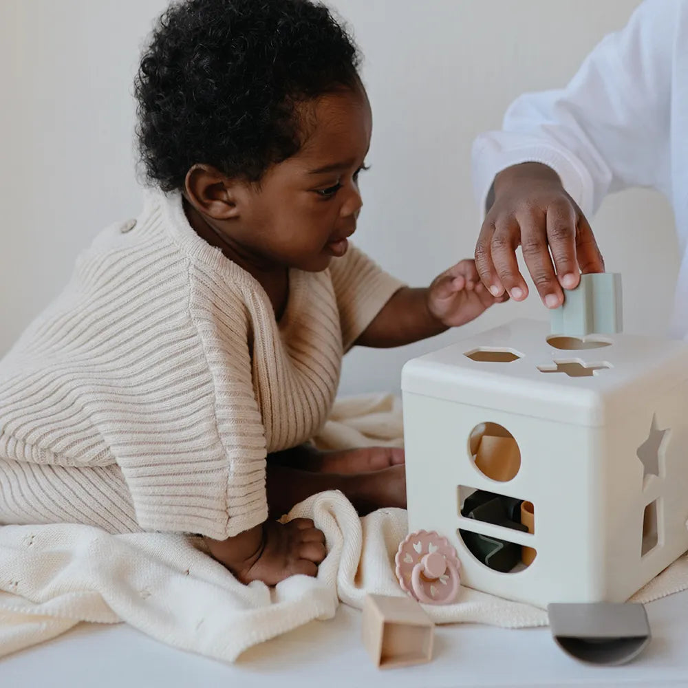 Det vil forbedre deres hånd-øje-koordination, deres afstandsbedømmelse, deres evne til at koncentrere sig og deres logiske tankegang. Legetøjet lader børn udforske forskellige og letgenkendelige former, mens de matcher dem til deres parrede udskæringer i kassen. Puttekassen kommer med 12 former i bløde farver.