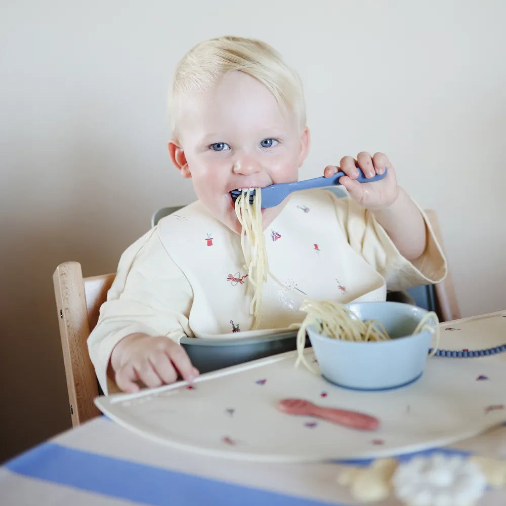 Giv baby smag på livet. Denne babyskål er en del af Mushies service, der er en stilren kollektion af babyvenligt service. Dagens måltider bliver lidt mere spændende, når man får lov til at spise rigtig mad. Skålen her er lavet til at kunne tåle babys hårdhændede udforskning af måltidet.
