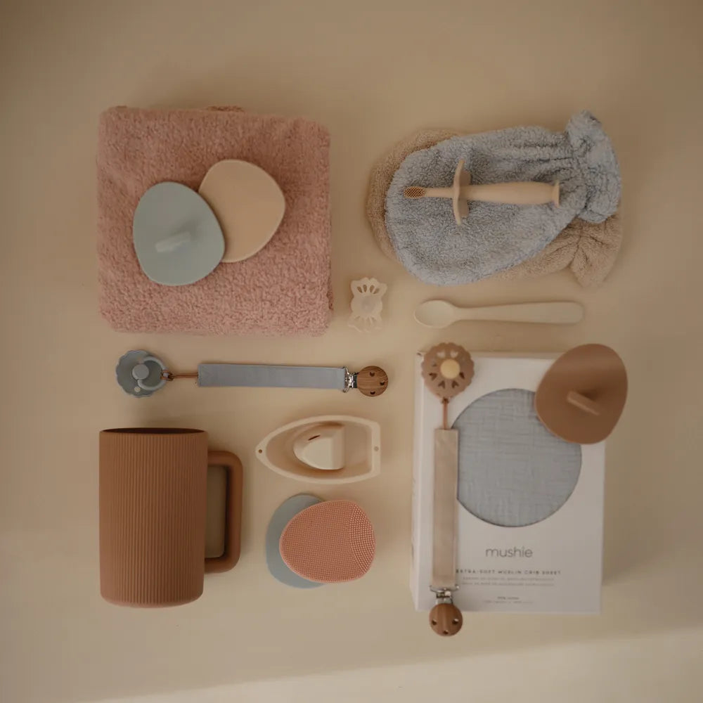 Den elegante skyllekande fra Mushie er designet til at gøre det til en leg at vaske dit barn.
