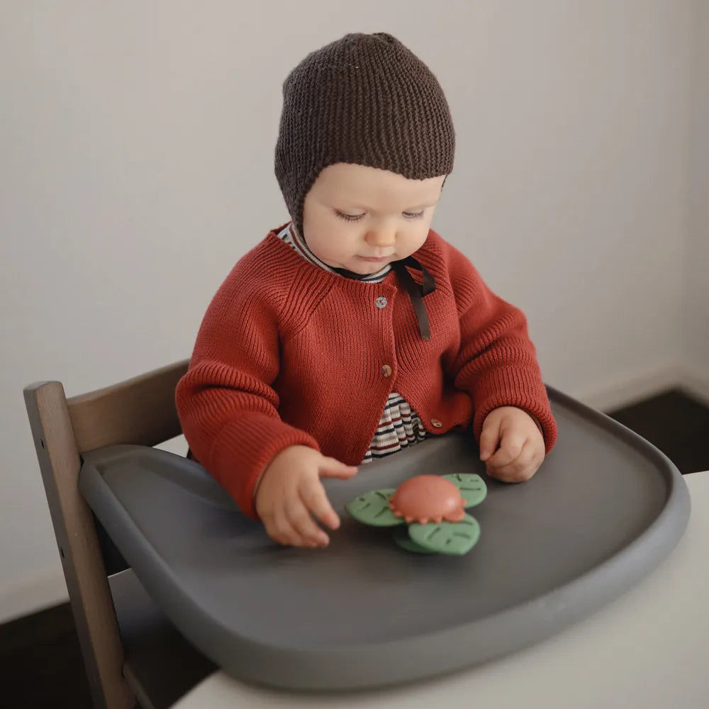 Aktivitetslegetøjet er lavet af plast og fødevaregodkendt silikone og er designet til at skabe sanseoplevelser for børn. Legetøjet har en sugekop, der sikrer, at den ikke rykker sig fra den overflade, den bliver sat fast på. Den kan f.eks. sættes fast på døre, stole, i badekar m.m.