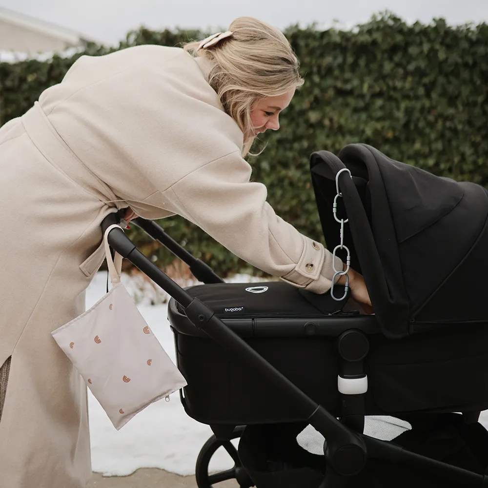 Den praktiske pose er designet til at holde børns ejendele tørre i enhver situation, f.eks. i forbindelse med en dag på stranden. Posen har en tryklås, som gør den nem at hænge eller fastgøre til en klapvogn, og hvert sæt består af to poser i to forskellige størrelser.